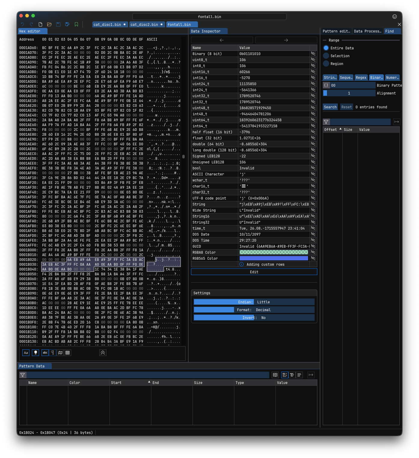 In the above screenshot, it’s clear to me that this is graphic data, because when I was typically seeing it in game data, we always have this cascade of three null bytes through the file. You can select 36 of them as I have to see how the pattern is ongoing.